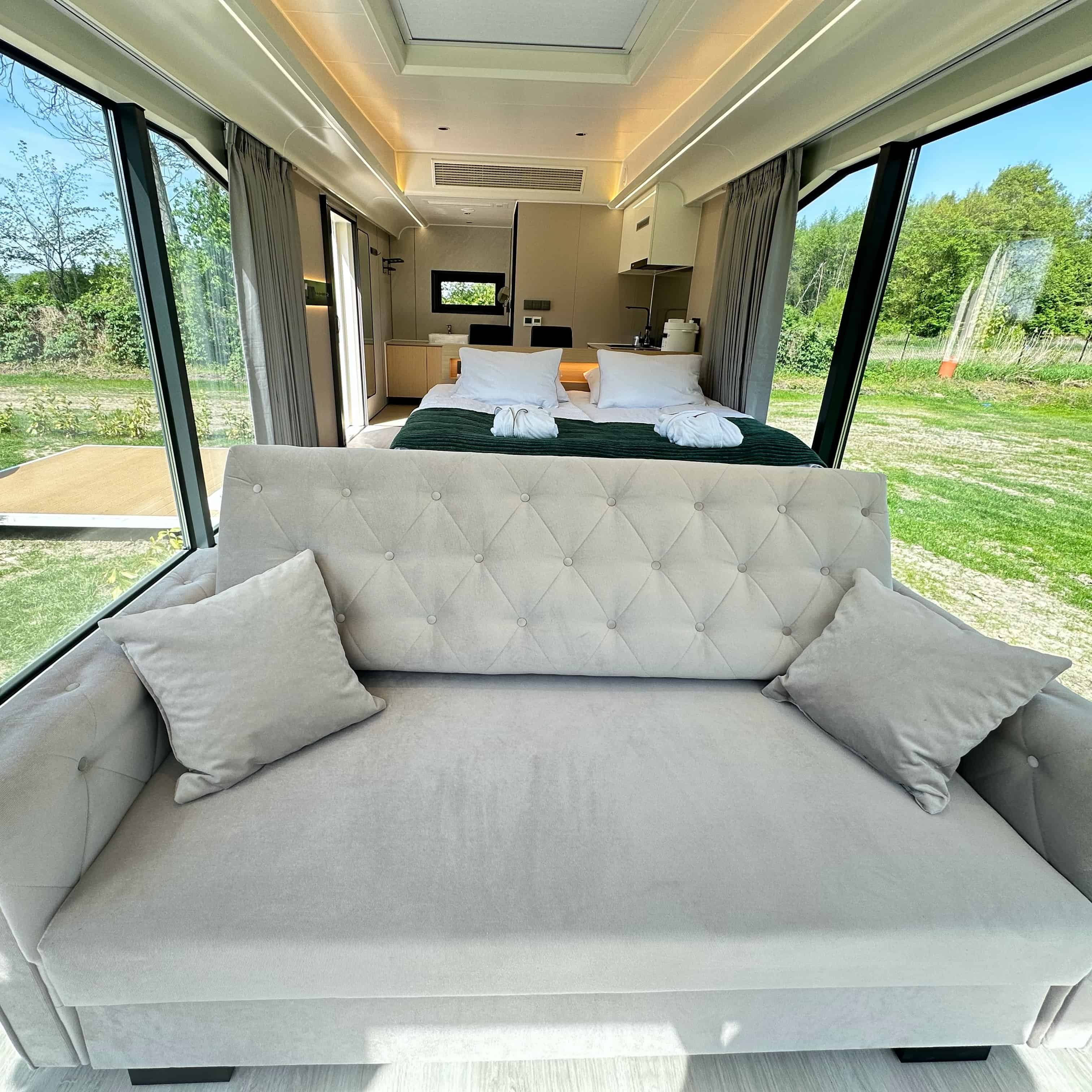 Duża przestrzeń naszych domków 'Afryka' idealnie nadaje się dla osób poszukujących ciekawego miejsca na spędzenie weekendu z dala od miasta. Każdy domek oferuje 32 metry kwadratowe przestrzeni, zaprojektowanej z myślą o połączeniu luksusowego i nowoczesnego wnętrza z otoczeniem parku Pałacu Wieniawskich.