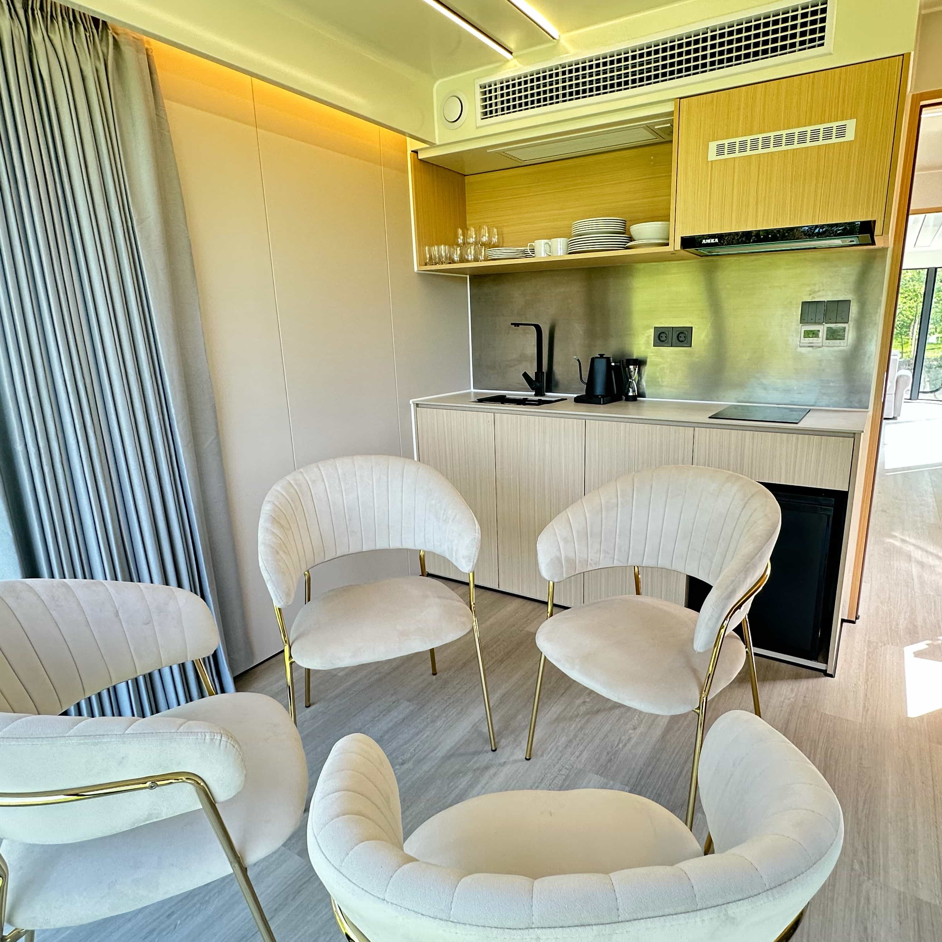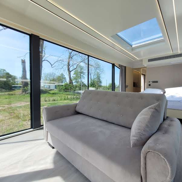 Duża przestrzeń naszych domków 'Ameryka' idealnie nadaje się dla osób poszukujących ciekawego miejsca na spędzenie weekendu z dala od miasta. Każdy domek oferuje 36,8 metra kwadratowego przestrzeni, zaprojektowanej z myślą o połączeniu luksusowego i nowoczesnego wnętrza z otoczeniem parku Pałacu Wieniawskich.
