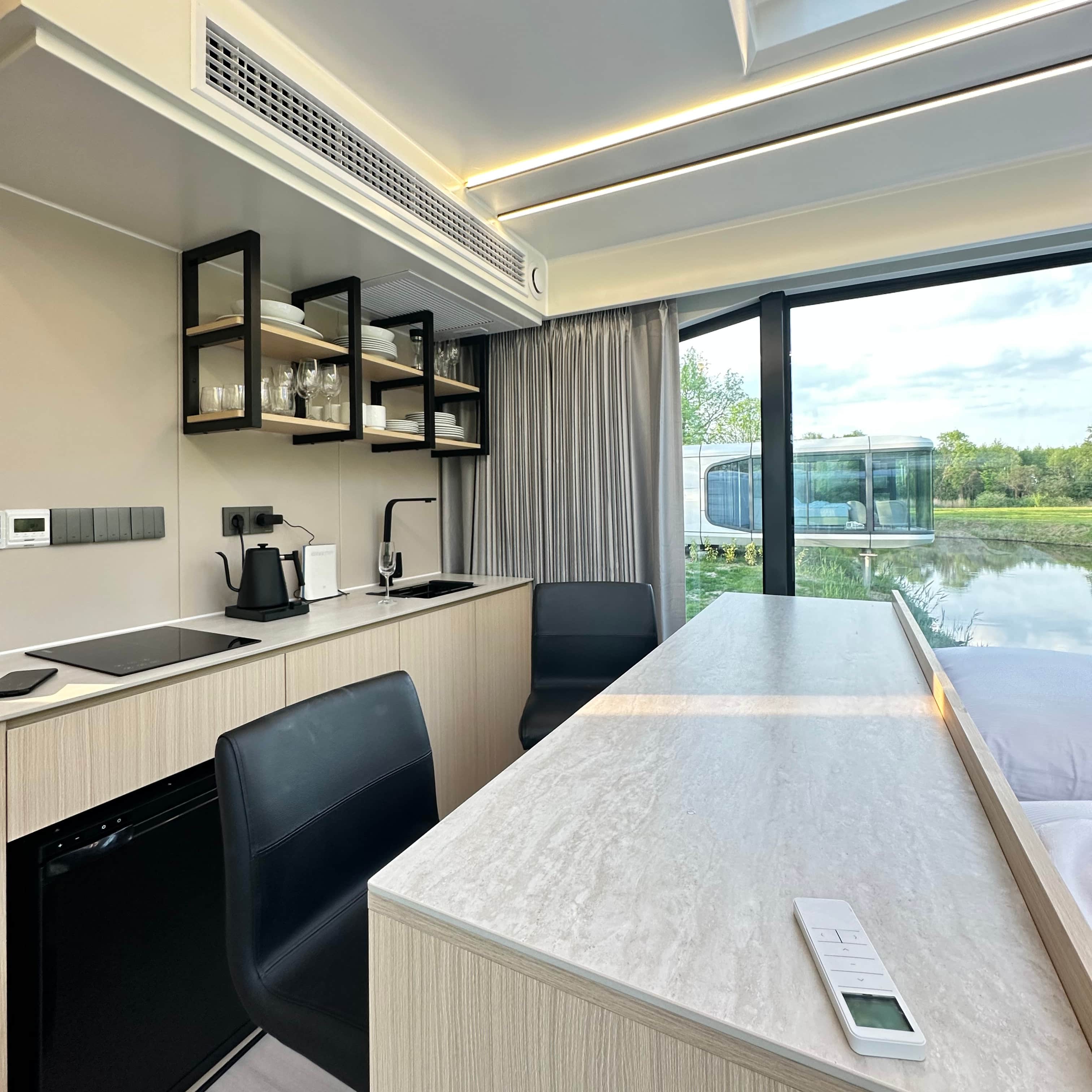 Duża przestrzeń naszych domków 'Holandia' idealnie nadaje się dla osób poszukujących ciekawego miejsca na spędzenie weekendu z dala od miasta. Każdy domek oferuje 36,8 metra kwadratowego przestrzeni, zaprojektowanej z myślą o połączeniu luksusowego i nowoczesnego wnętrza z otoczeniem parku Pałacu Wieniawskich.