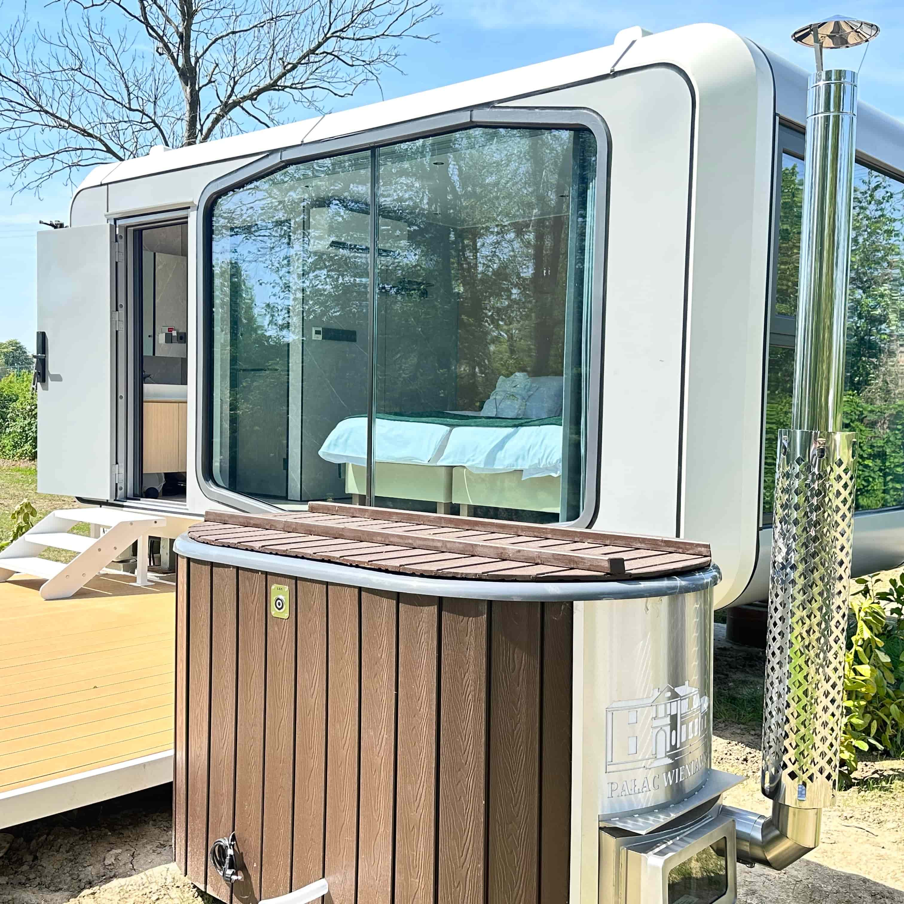 Przed każdym domkiem znajduje się balia opalana drewnem, idealna zarówno na chłodniejsze wieczory, jak i ciepłe dni.