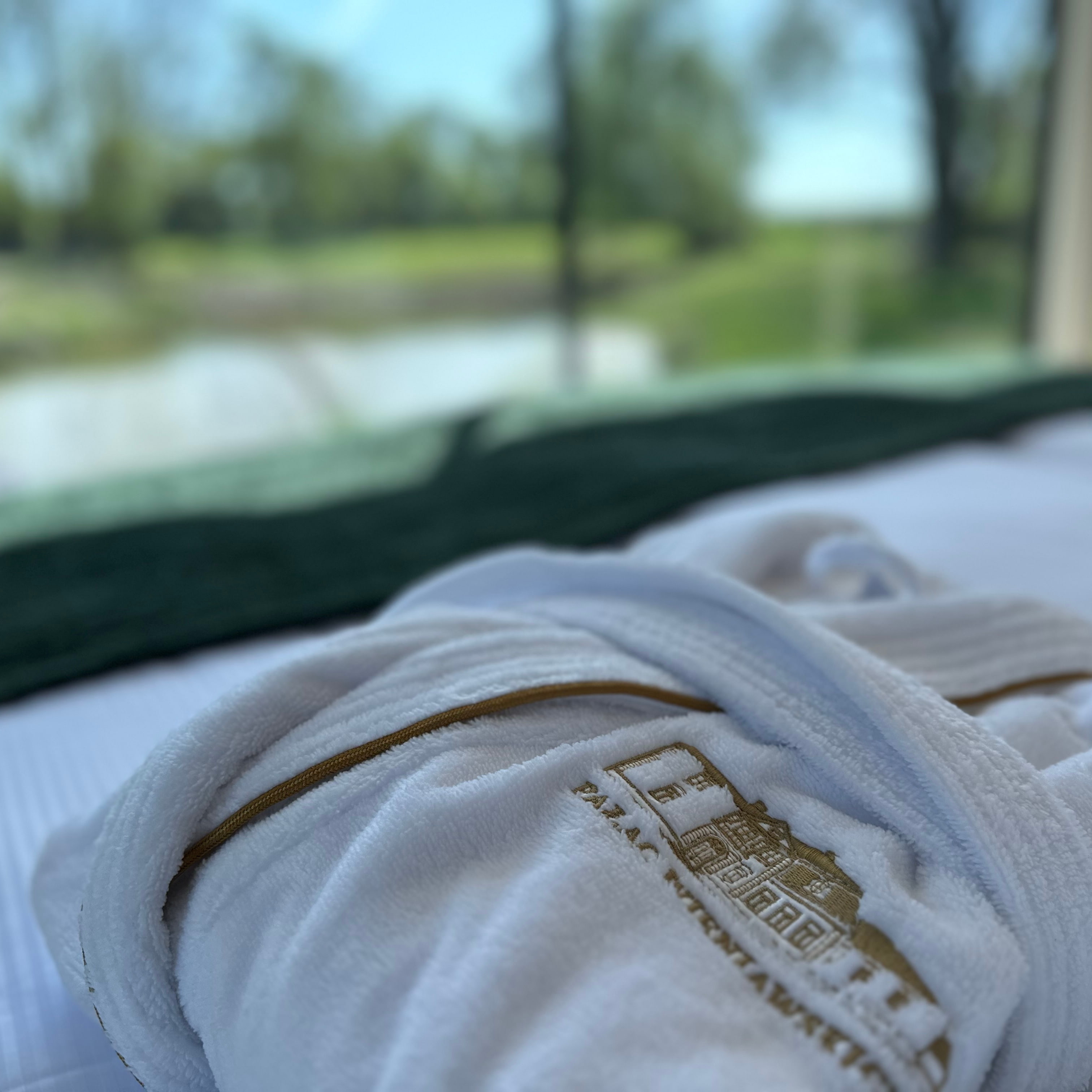 Przez ogromne okno naprzeciwko łóżka widać jedynie jezioro i drzewa, co czyni to miejsce idealnym do odcięcia się od zgiełku codzienności.